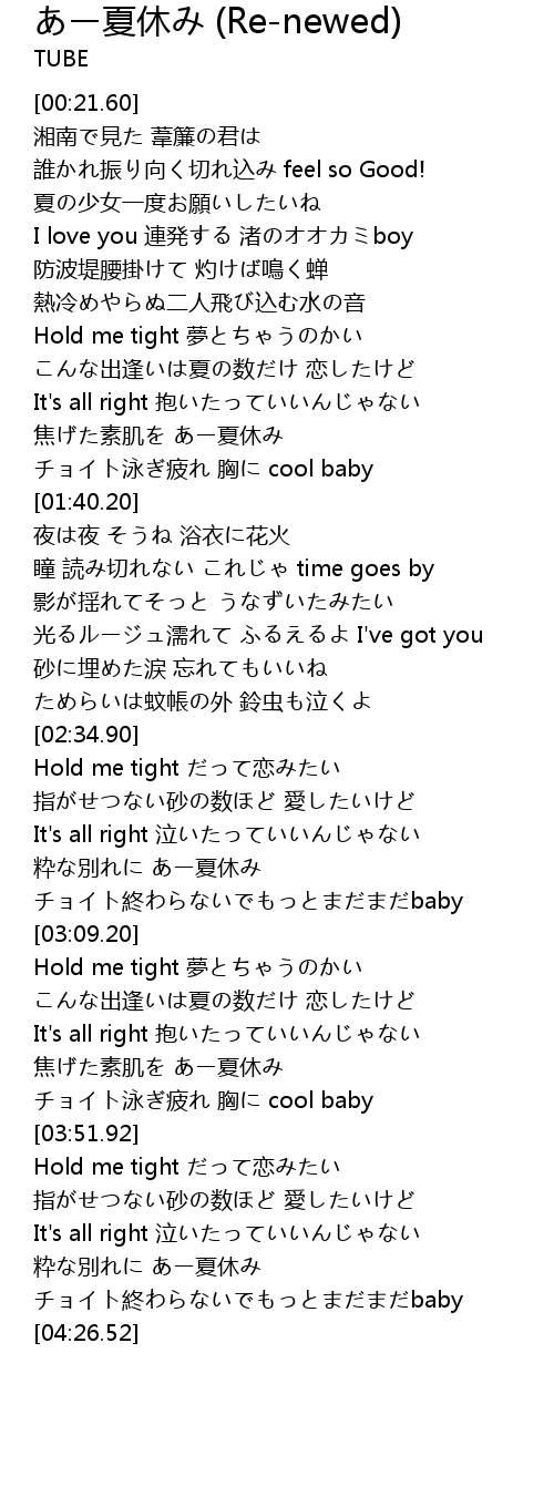 | [01:24.58] | 焦げた素肌を あー夏休み |