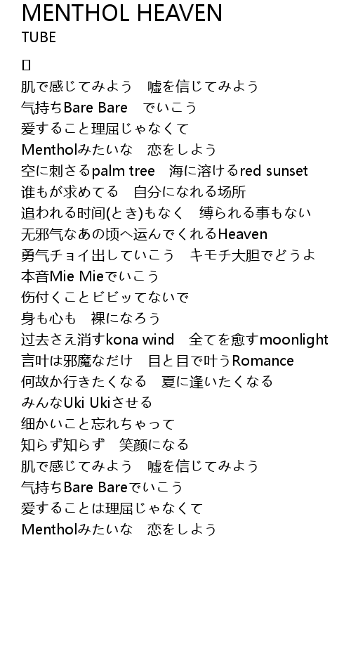 | Song | MENTHOL HEAVEN |