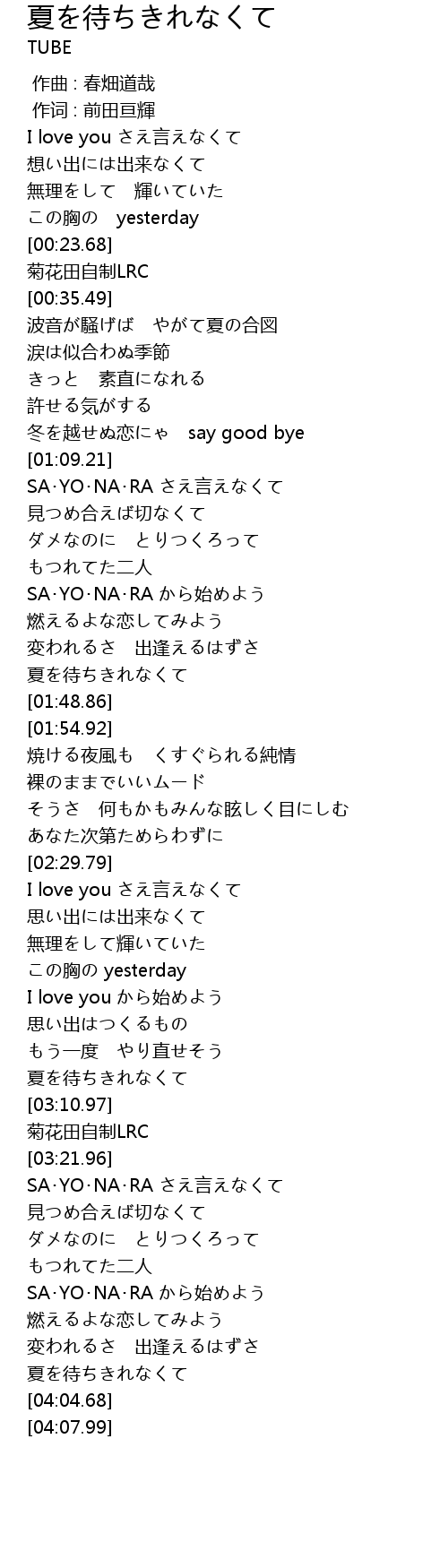 | [01:11.65] | SA・YO・NA・RA さえ言えなくて |