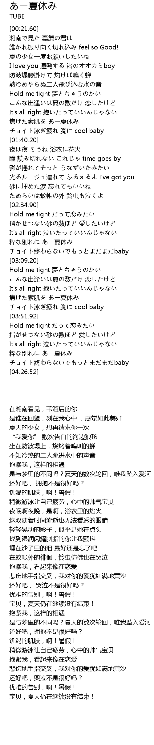| [01:24.58] | 焦げた素肌を あー夏休み |
