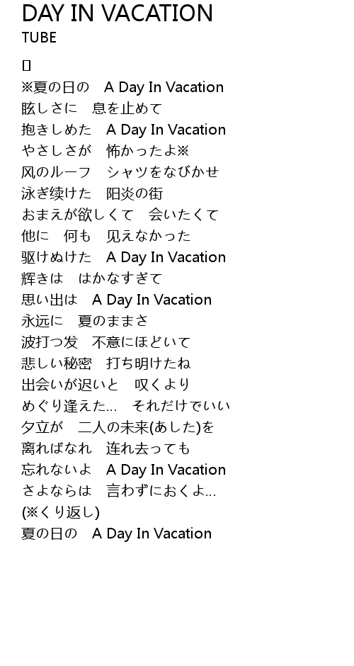 思い出は A Day In Vacation |