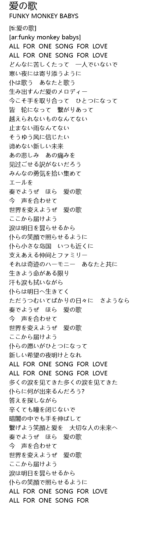 | [03:49.88] | ALL FOR ONE SONG FOR LOVE |