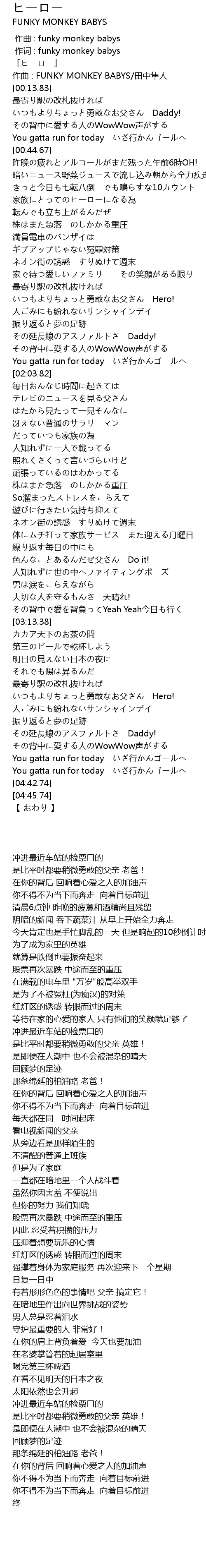 | [03:03.29] | その背中で愛を背負ってYeah Yeah今日も行く |