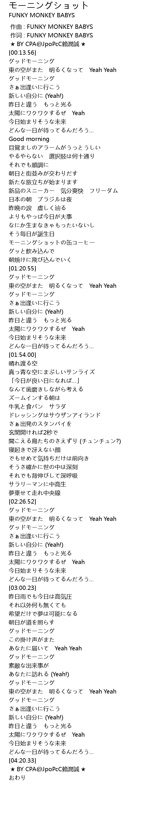 | [00:00.00] | 作曲 : FUNKY MONKEY BABYS |