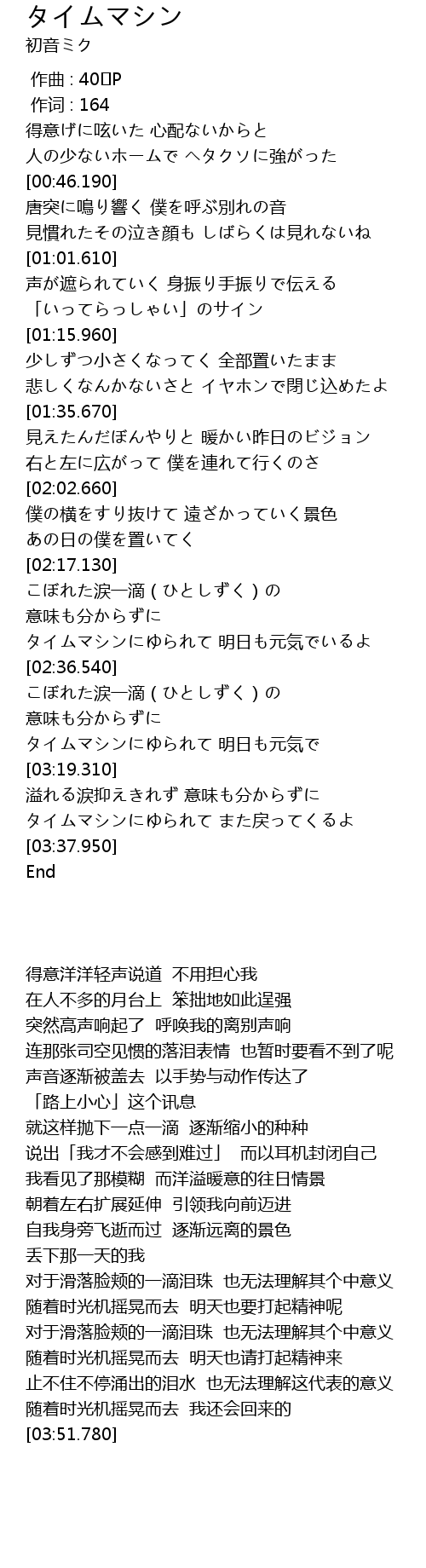 | [03:27.650] | タイムマシンにゆられて また戻ってくるよ |