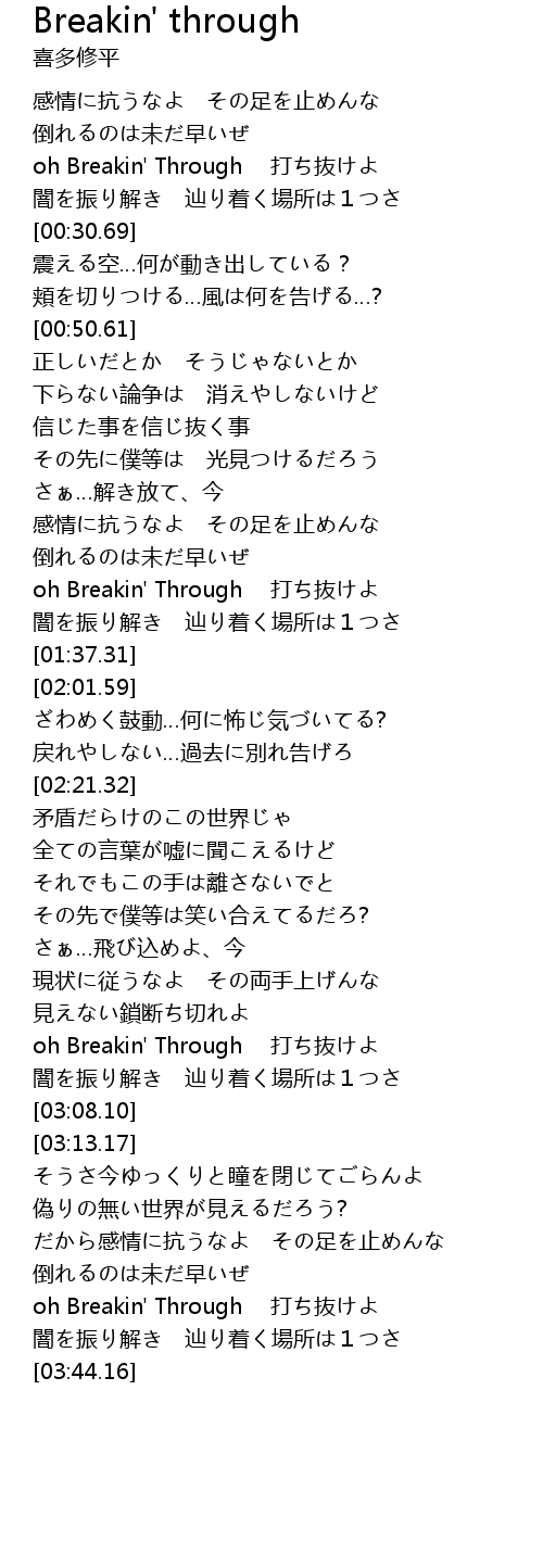 | [02:58.94] | oh Breakin' Through 打ち抜けよ |