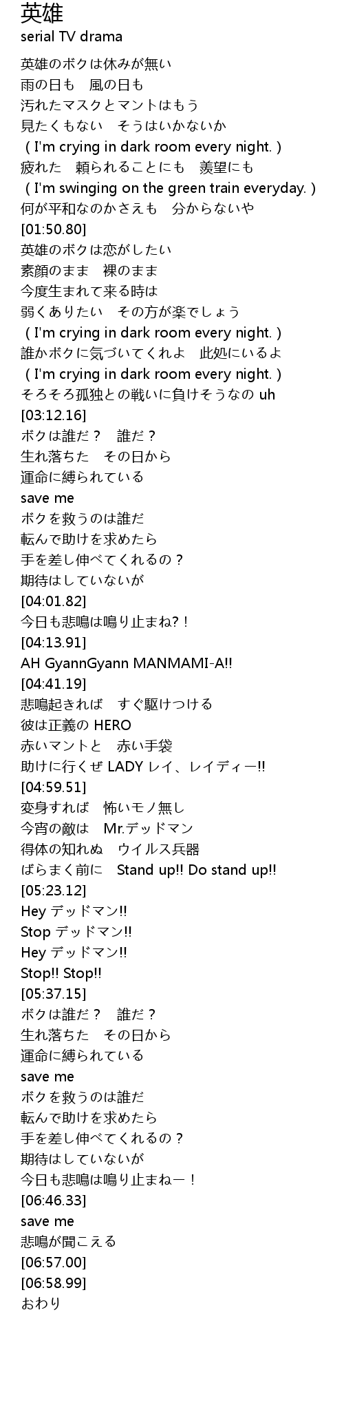 | [04:46.81] | 彼は正義の HERO |