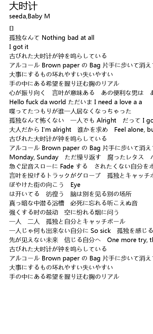| 大人だから I'm alright 谁かを求め Feel alone, but I will be fine | |
