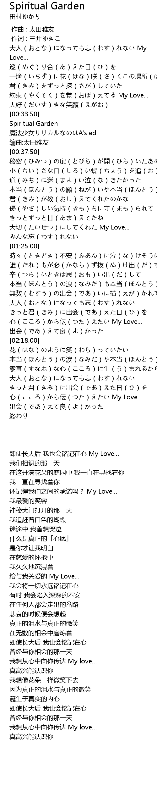 | [00:38.50] | 秘密(ひみつ)の扉(とびら)が開(ひら)いたあの日(ひ) |