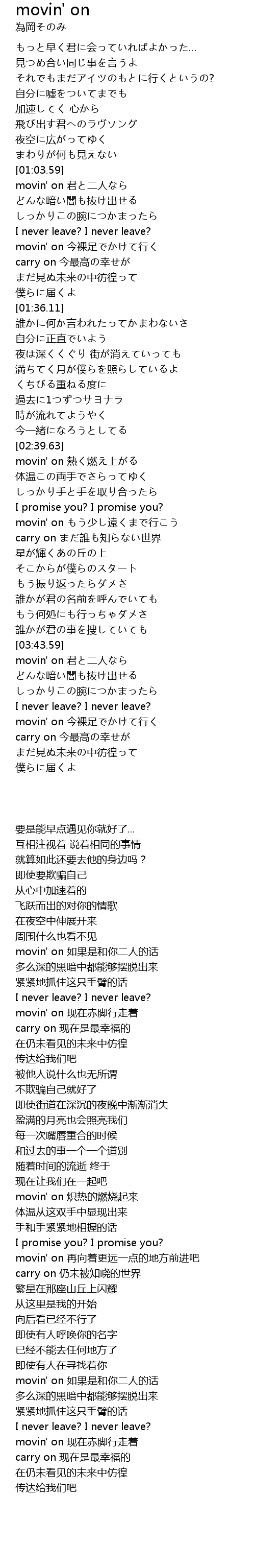 | [02:54.98] | movin' on もう少し遠くまで行こう |