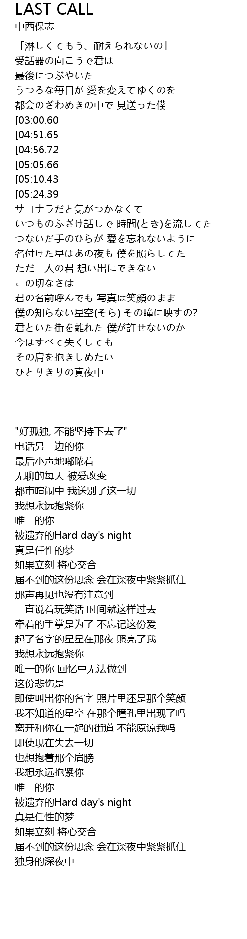 | [01:21.75][04:56.72] | 置き去りのHard day's night |