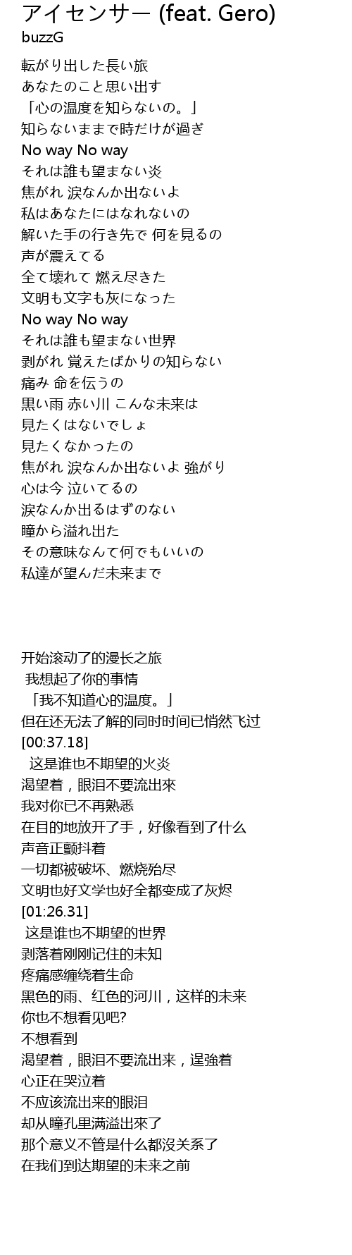 | [01:16.02] | 全て壊れて 燃え尽きた |