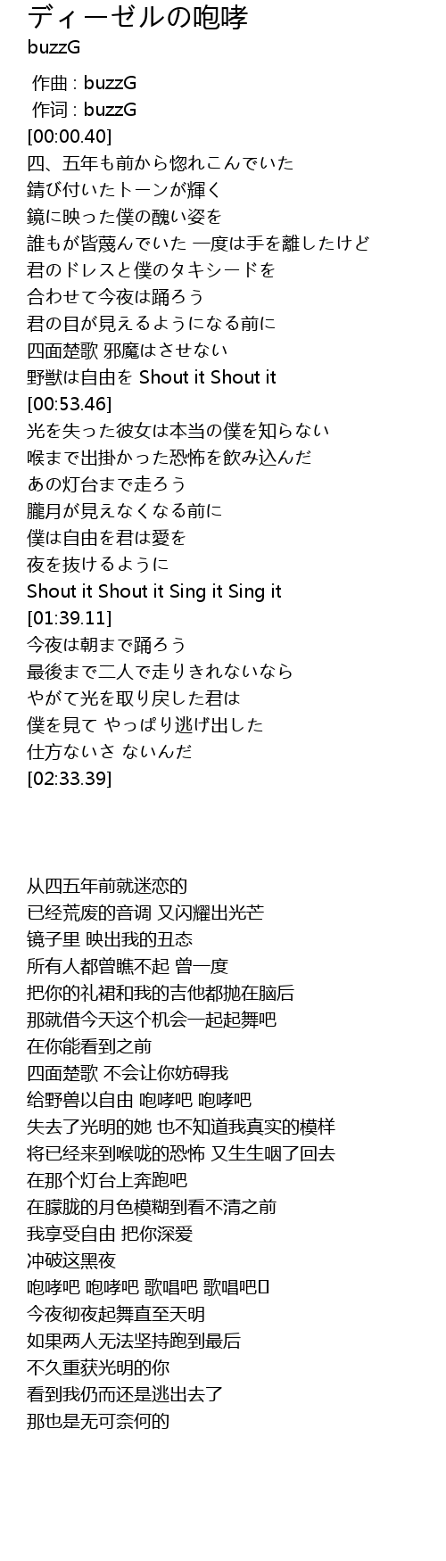 | [00:00.13] | zuo ci : buzzG |