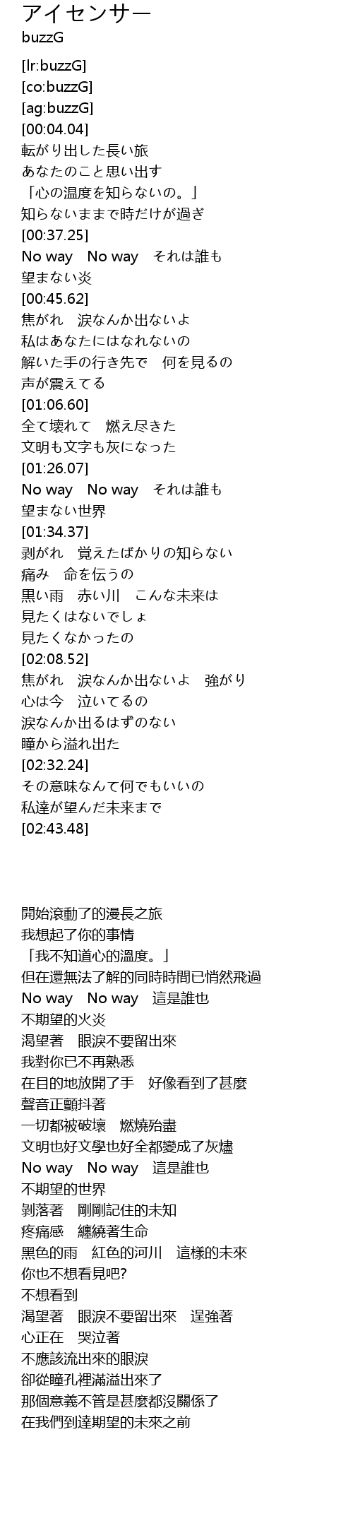 | [01:45.59] | 黒い雨 赤い川 こんな未来は |