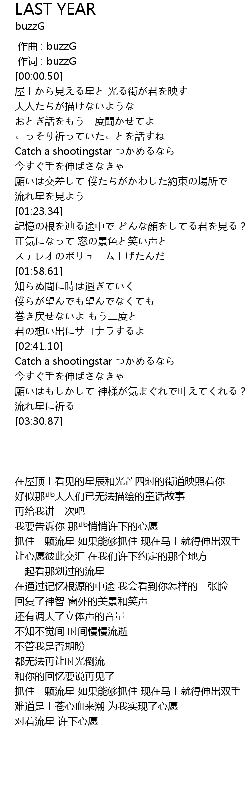 | [02:58.39] | Catch a shootingstar jīn shǒu shēn |