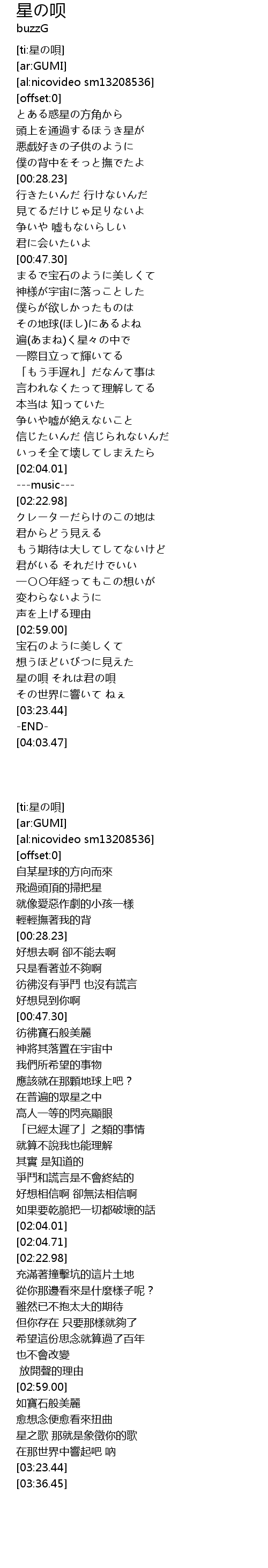 | [ti:星の唄] | |