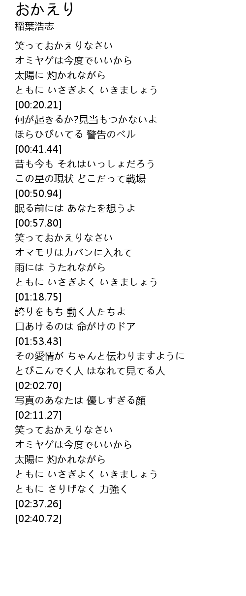 | [00:01.70] | 笑っておかえりなさい |