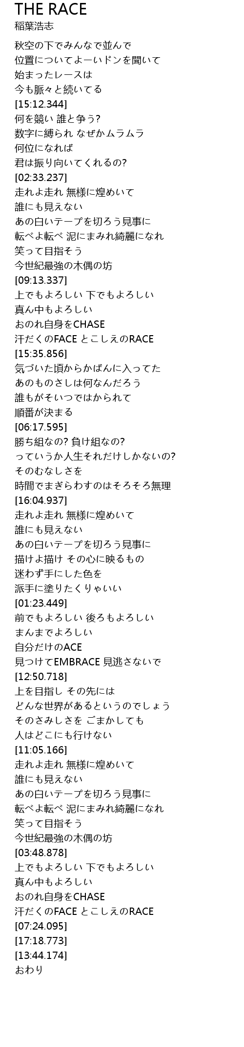 | [10:18.590] | 汗だくのFACE とこしえのRACE |