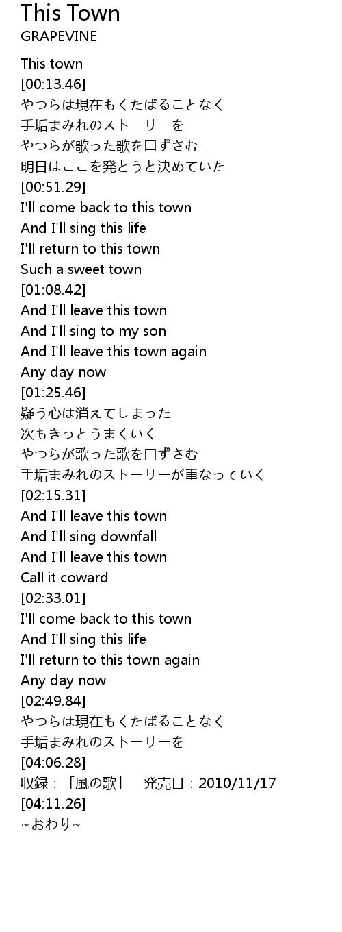 | [02:26.17] | And I' ll leave this town |