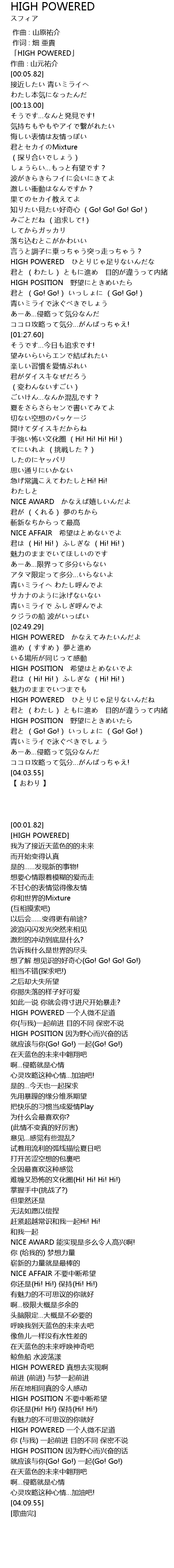 | [00:54.94] | HIGH POWERED ひとりじゃ足りないんだな |