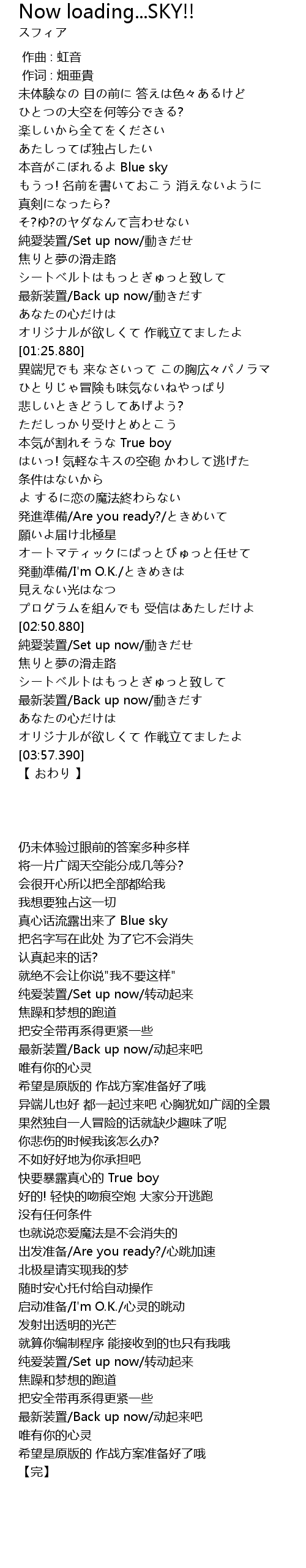 | Song | Now loading...SKY!! |
