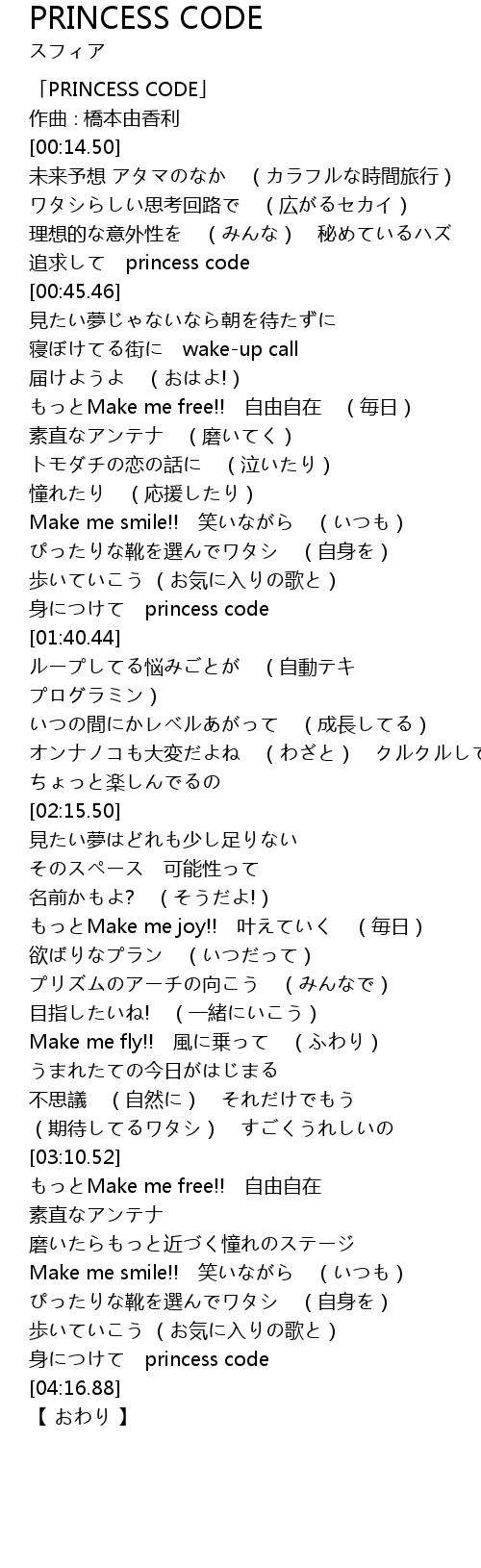 | [02:34.93] | もっとMake me joy!! 叶えていく (毎日) |