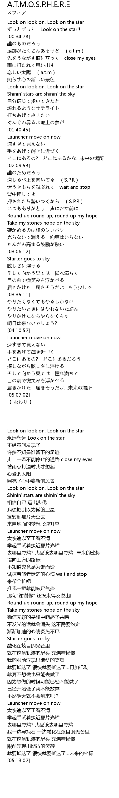 | [02:20.16] | 道しるべ上を向いてる (S.P.R) |
