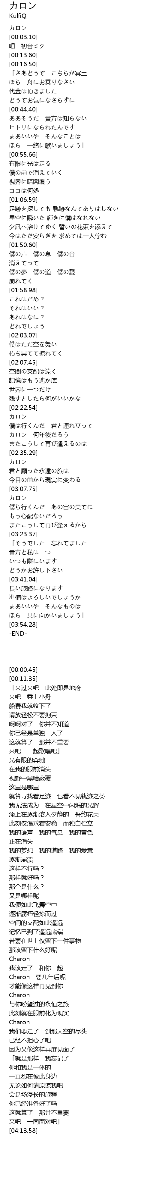 | [00:00.45] | カロン |