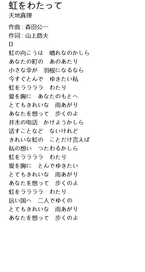 | Song | 虹をわたって |