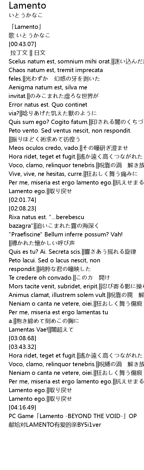 | [00:00.00] | 「Lamento」 |