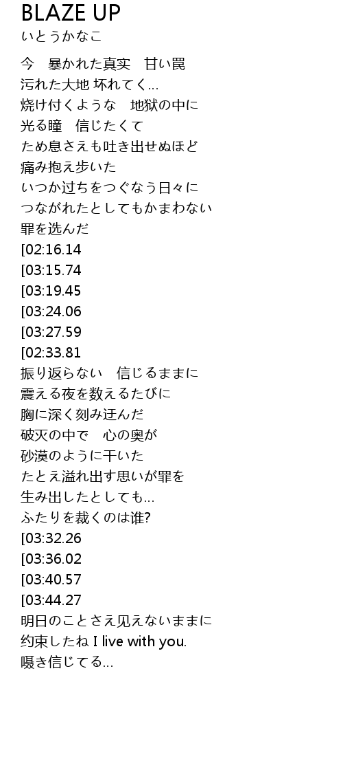 | [01:01.11][02:16.14][03:14.90] | BLAZE UP |