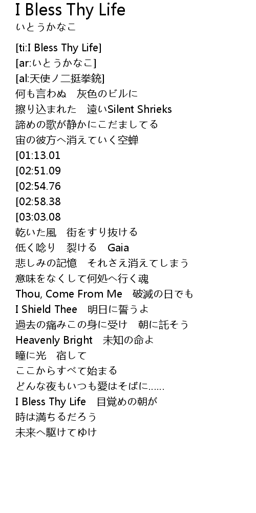 | [00:52.98][02:51.09] | I Bless Thy Life cì zhǒng |