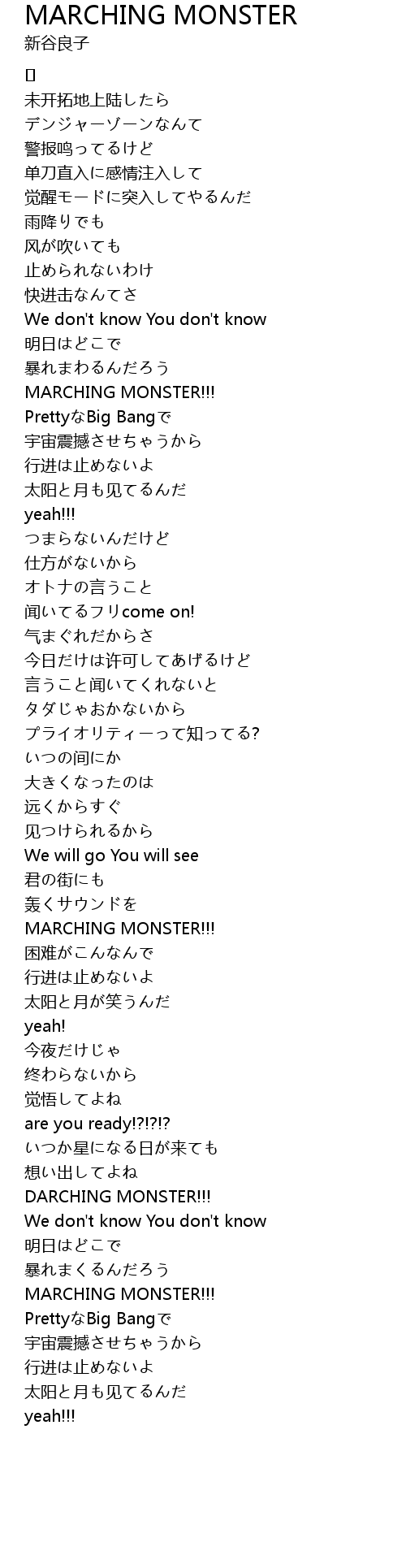 | Song | MARCHING MONSTER |