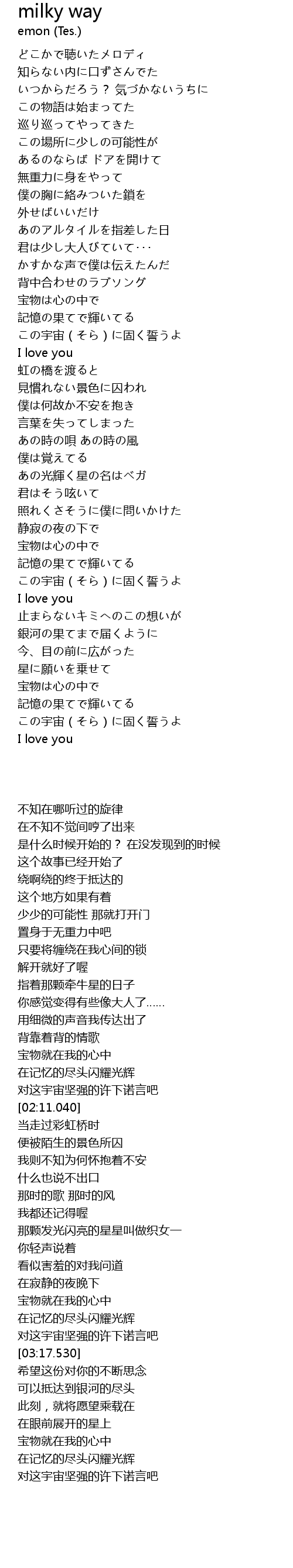 | [03:45.030] | この宇宙(そら)に固く誓うよ |