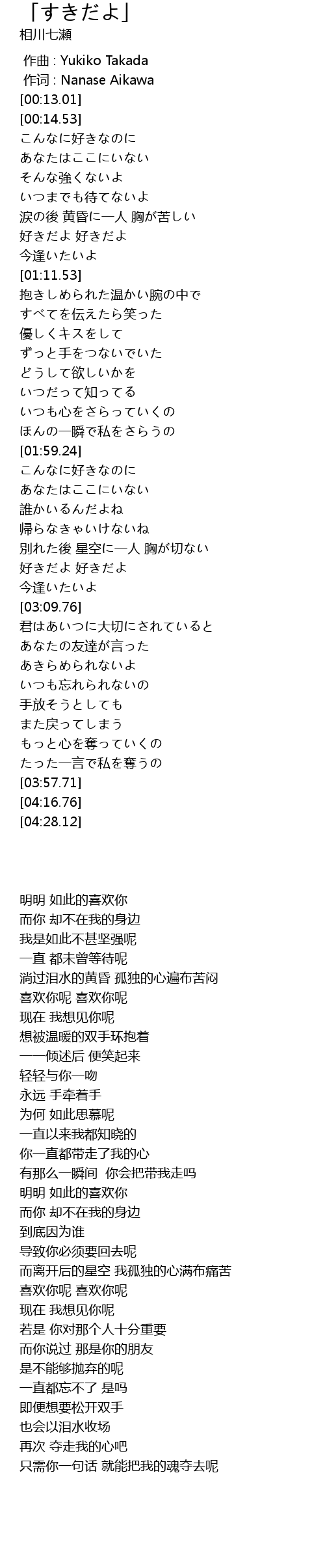 | [02:55.78] | 好きだよ 好きだよ |