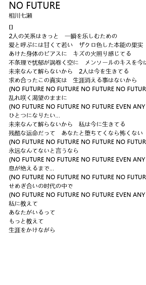 | NO FUTURE NO FUTURE NO FUTURE NO FUTURE | |