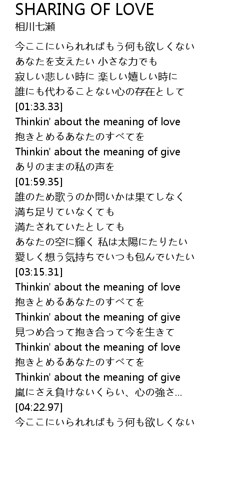| [03:42.94] | 見つめ合って抱き合って今を生きて |