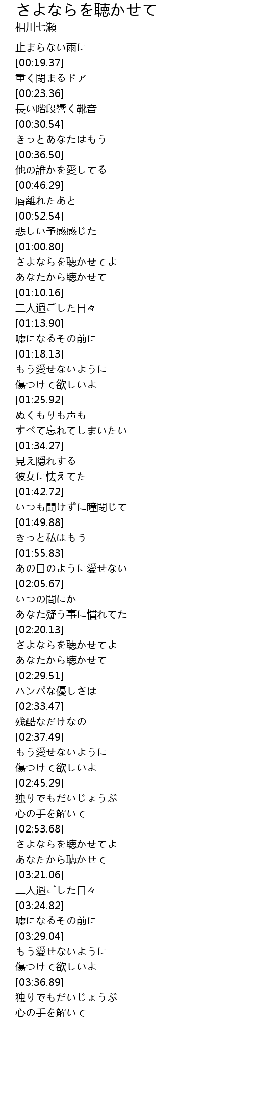 | [01:03.12] | さよならを聴かせてよ |
