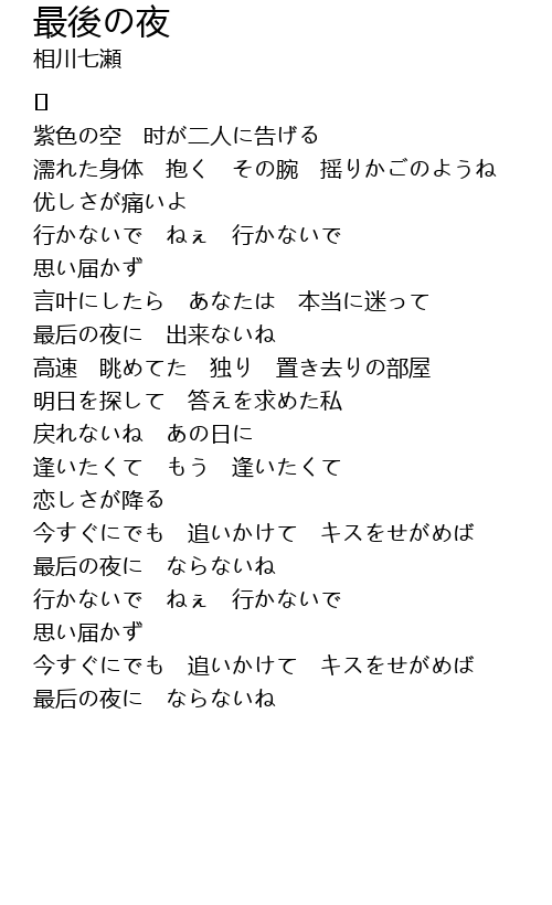 | 濡れた身体 抱く その腕 摇りかごのようね | |