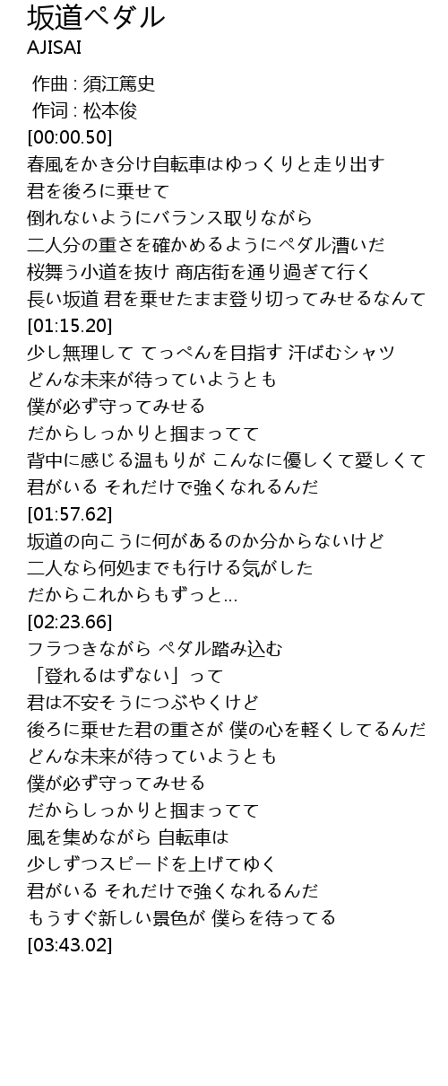 | [00:46.00] | 二人分の重さを確かめるようにペダル漕いだ |