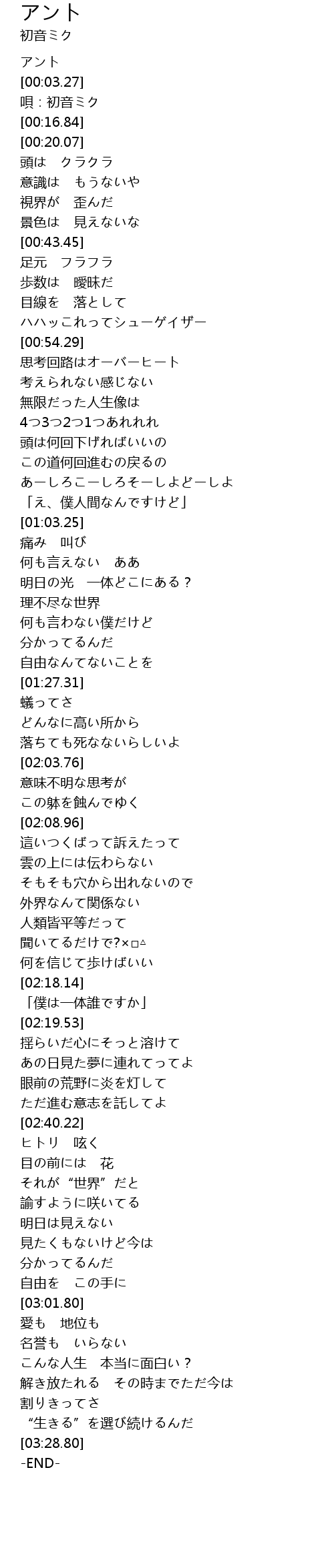 | [00:00.98] | アント |
