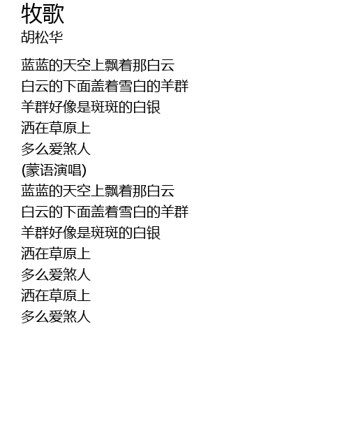 | [02:23.800] | 白云的下面盖着雪白的羊群 |