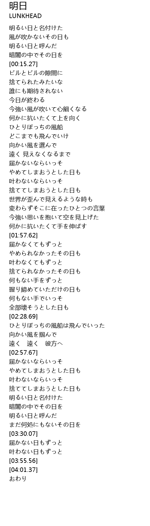 | [01:35.69] | 変わらずそこに在ったひとつの言葉 |