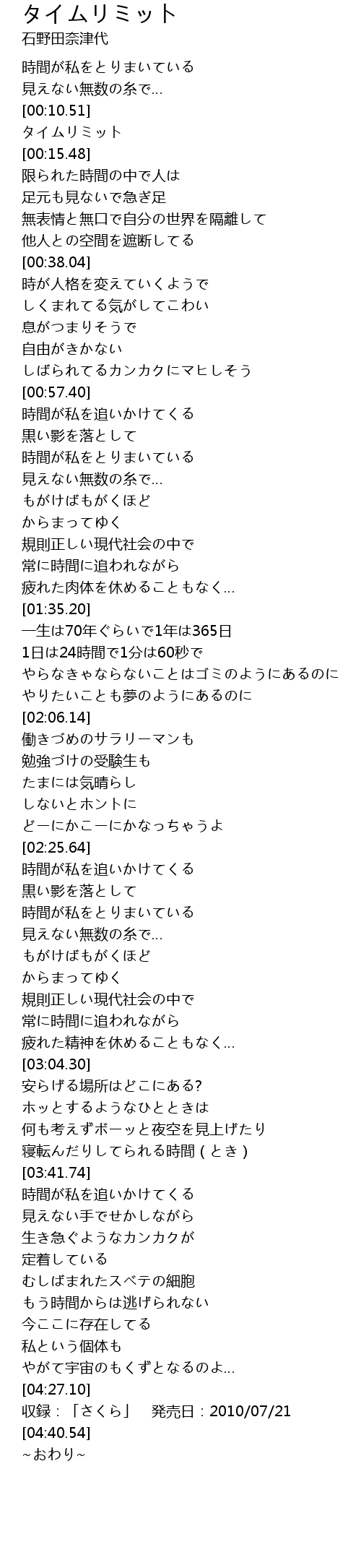 | [00:11.97] | タイムリミット |