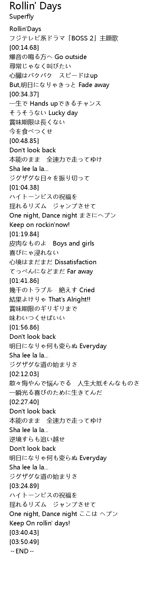 | [03:36.62] | Keep On rollin' days! |