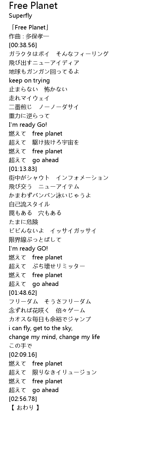 | [00:01.56] | 「Free Planet」 |