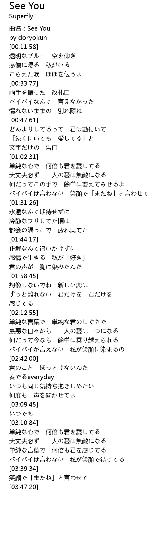 | [00:03.57] | 曲名:See You |