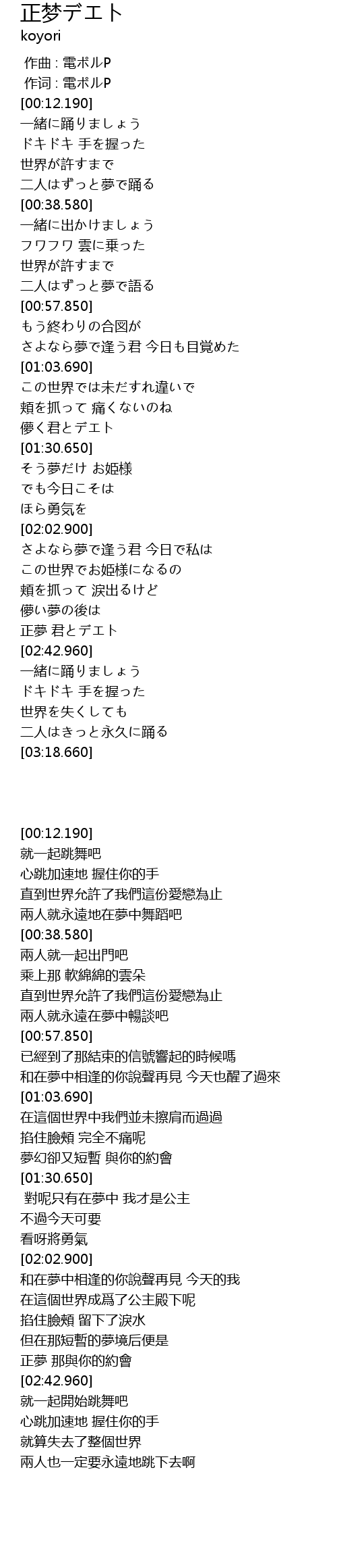 | [02:33.490] | 正夢 君とデエト |