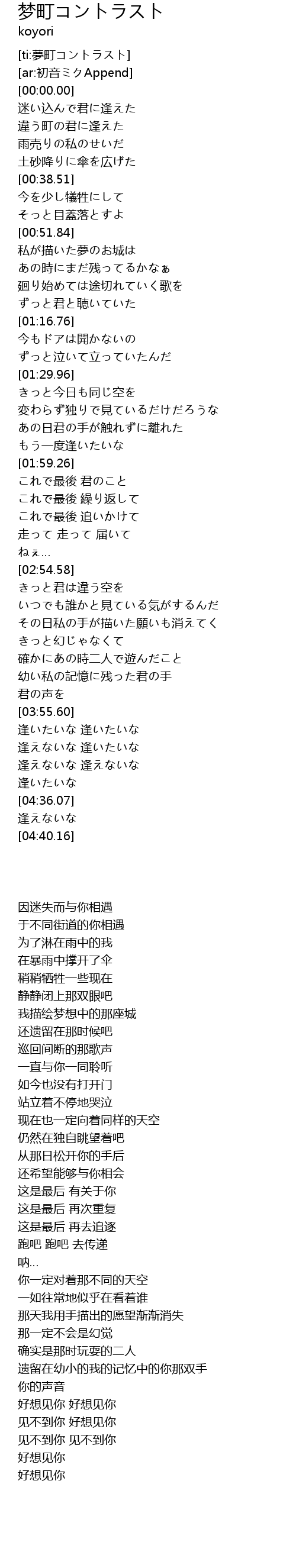| [03:18.60] | その日私の手が描いた願いも消えてく |