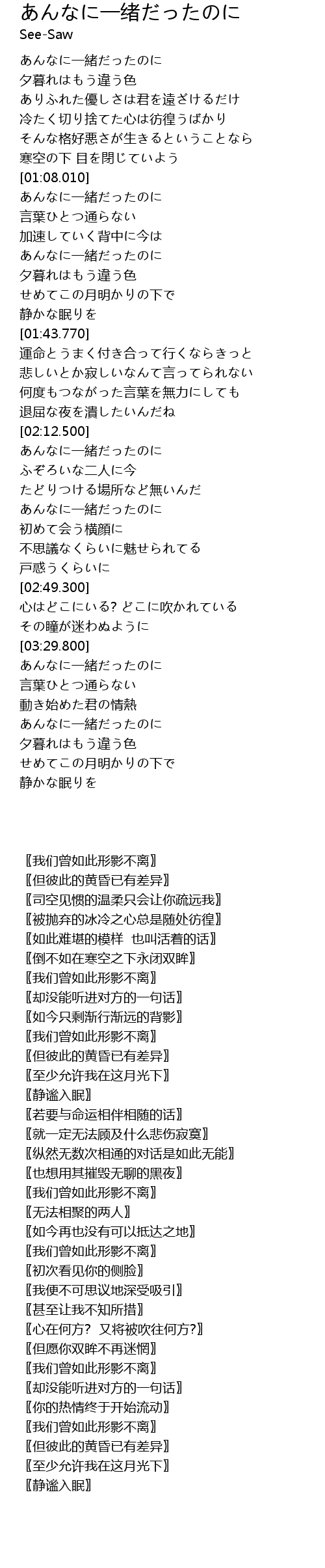 | [01:09.250] | あんなに一緒だったのに |